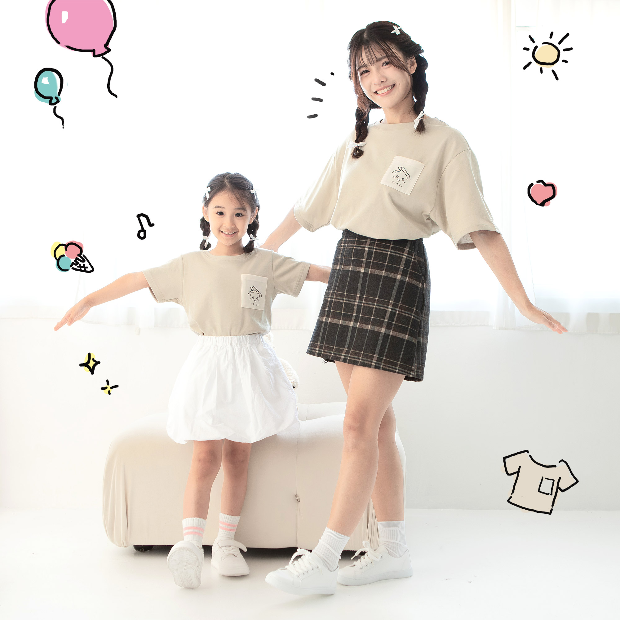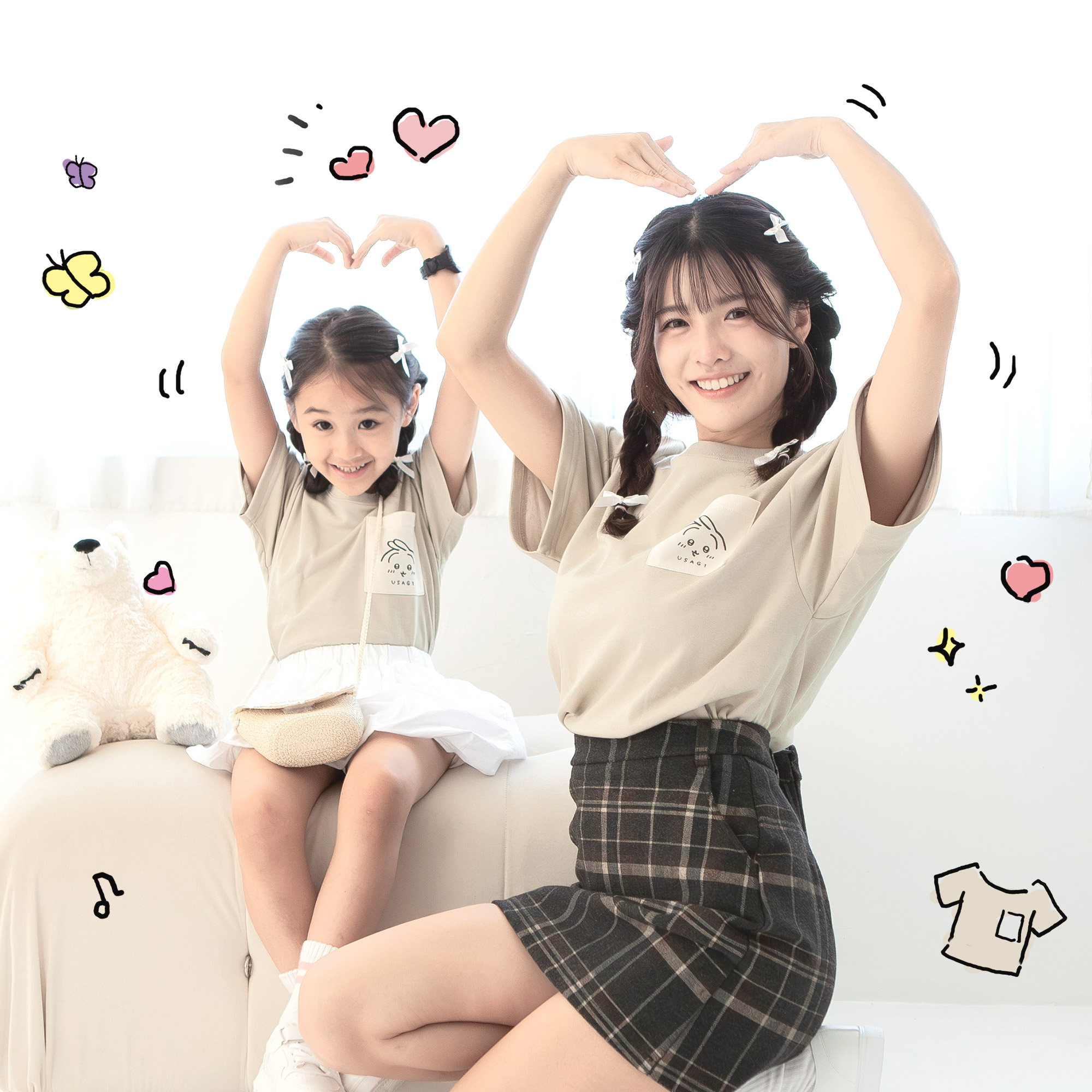MeStar - 兔兔 童裝&女裝 撞色口袋T恤