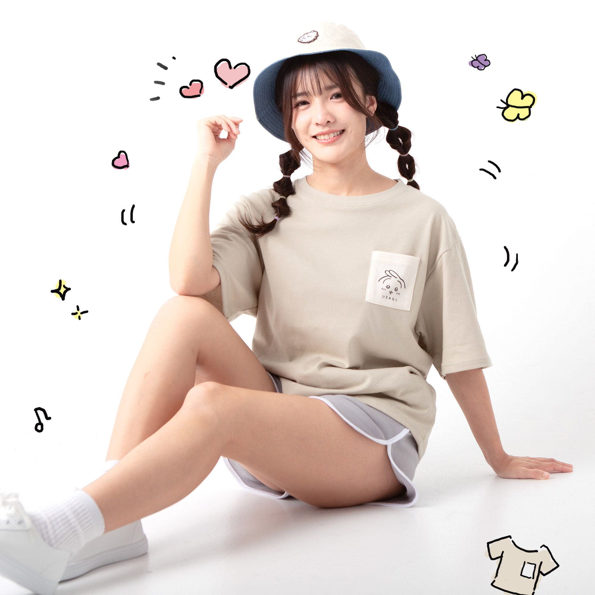 《MeStar - 兔兔 撞色口袋T恤》