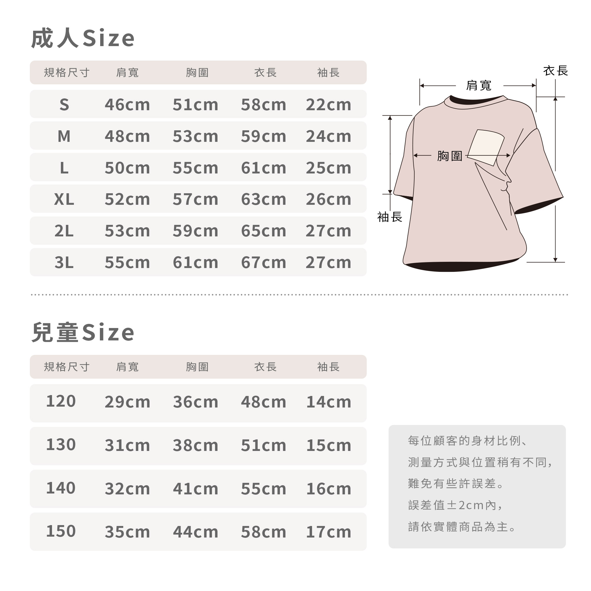 .成人 S~3L $390 / 兒童 120~150 $390